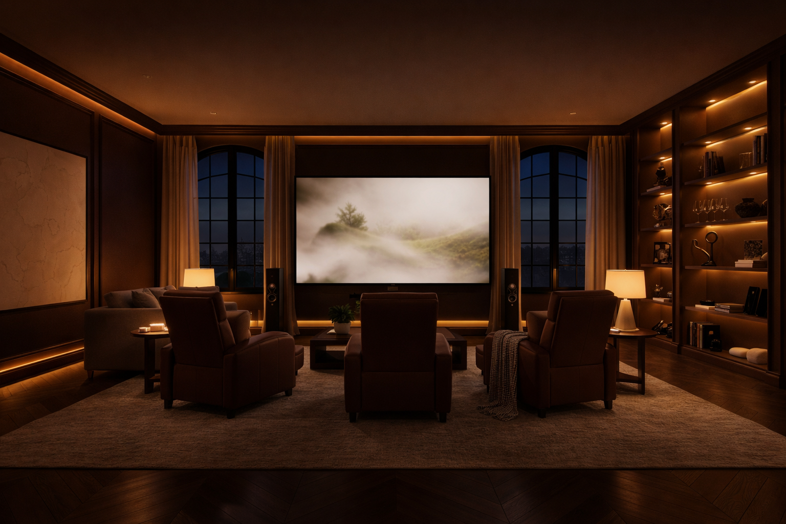 Immerse Designs exists to transform living spaces into deeply personal cinematic sanctuaries, where technology and design converge seamlessly. We believe true luxury is intentional curating tailored bundles that honor each client’s vision, space, and lifestyle. Our mission is to deliver immersive experiences built on trust, craftsmanship, and uncompromising quality, so every moment at home feels extraordinary.